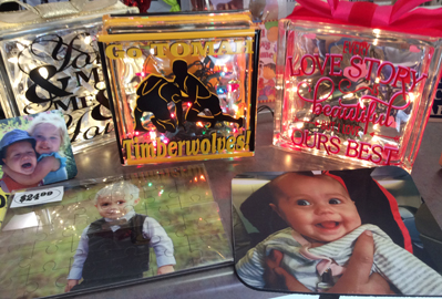 We also engrave wood, glass and granite. These are done right here in our local store so we can personally oversee the quality of each gift, and you have easier access to getting it.. We do wood signs, wedding etched glassware, memorial and granite pieces for pets and loved ones. We specialize in gifts for weddings, holidays, anniversaries, and any special occasion.